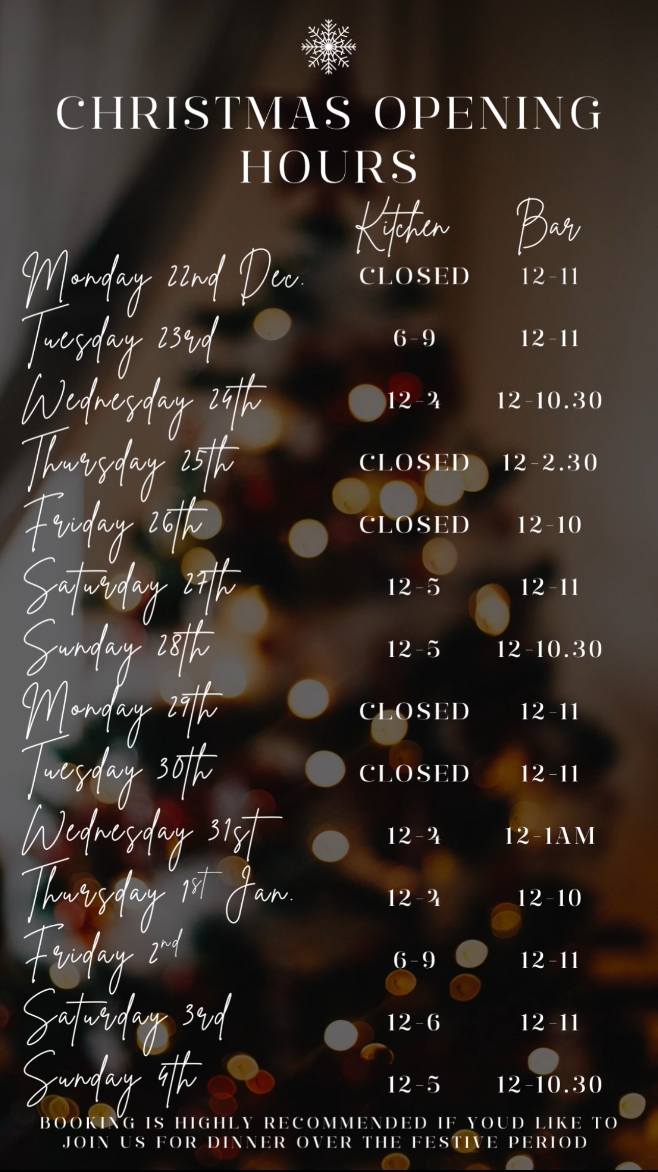 Please note: The Christmas Menu is not available on Sundays or Mondays, and is only served on a pre-book / pre-order basis.